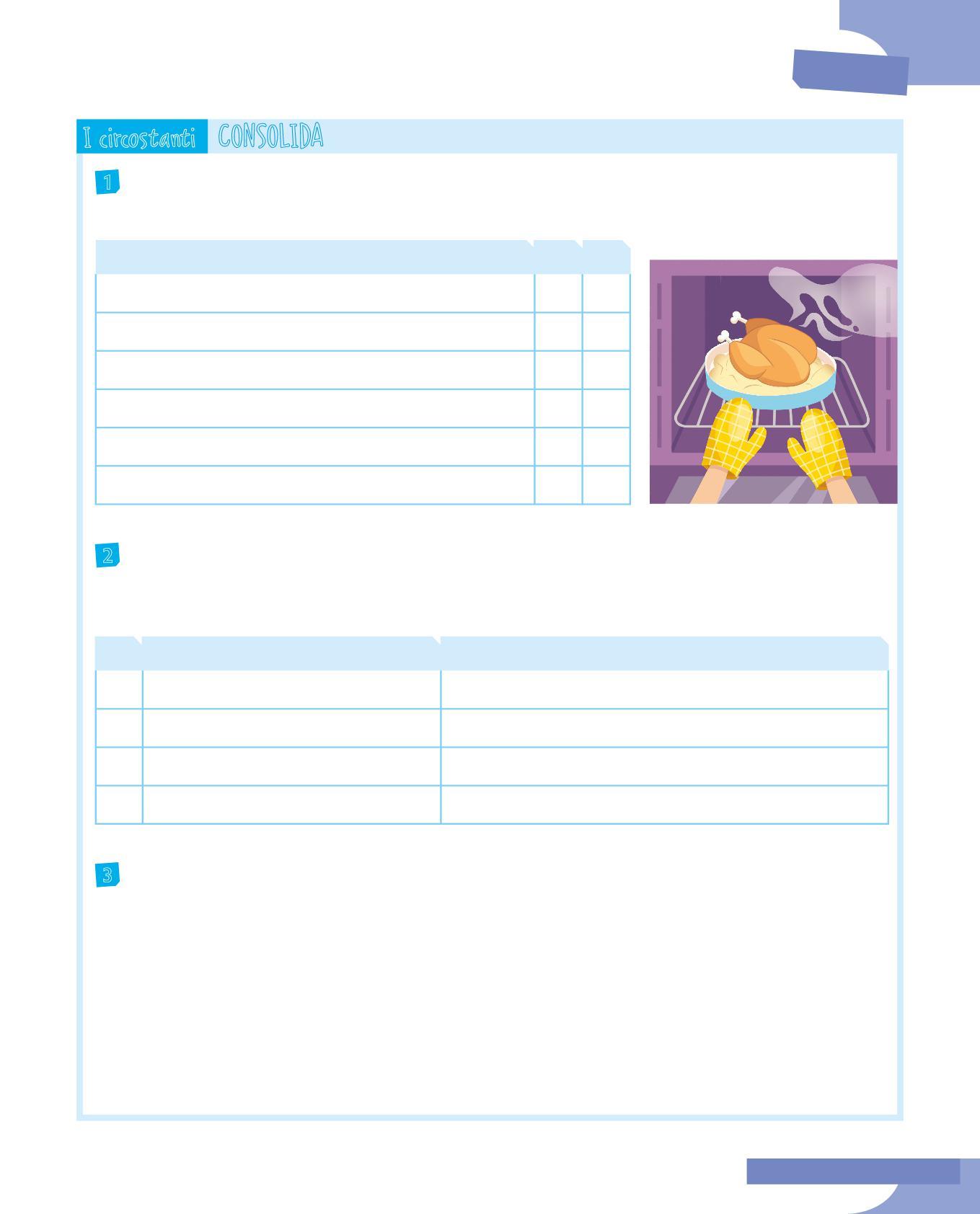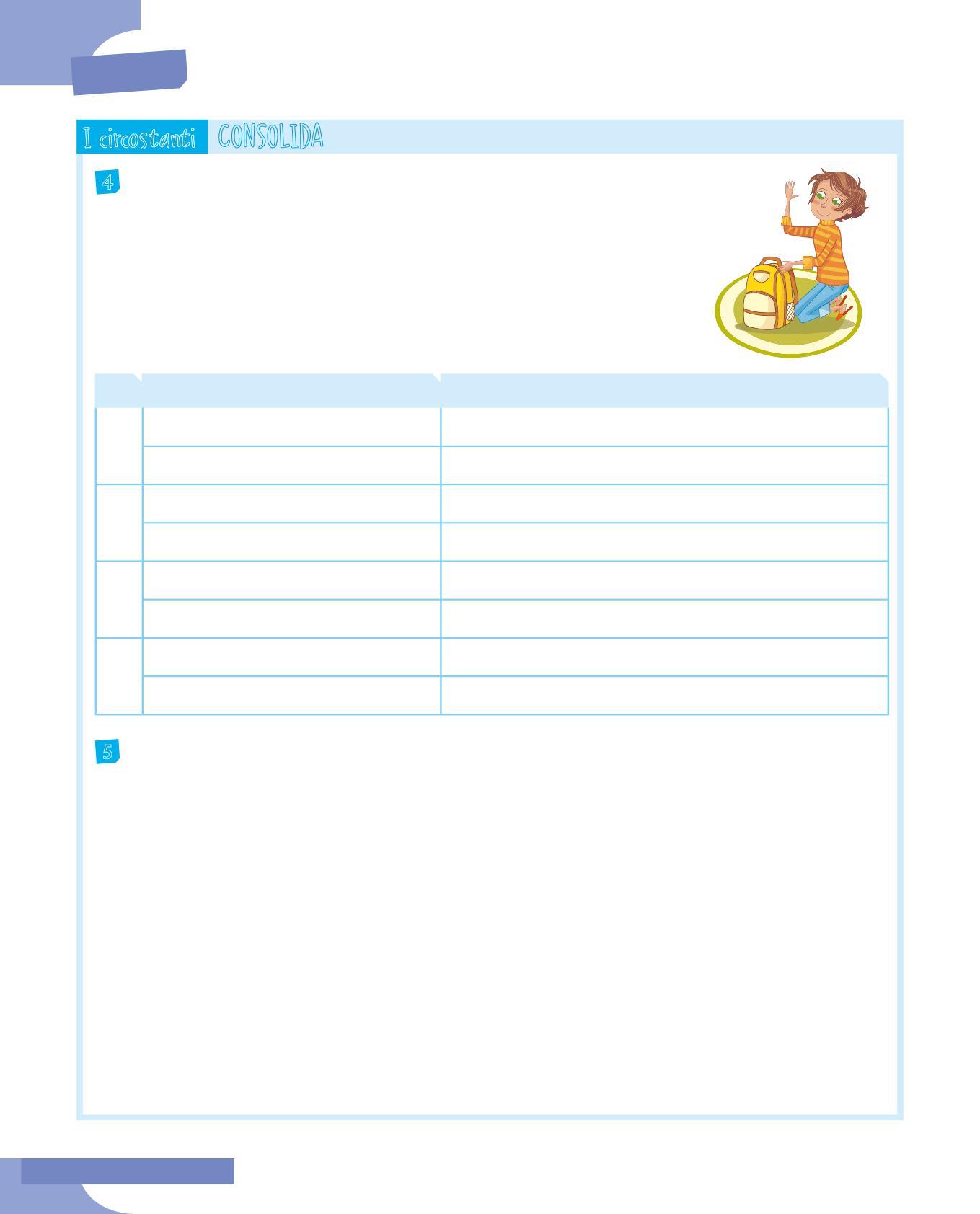 3 Rifletti sui circostanti dell’esercizio precedente e completa la tabella: spiega il significato che aggiungono a ogni elemento del nucleo.