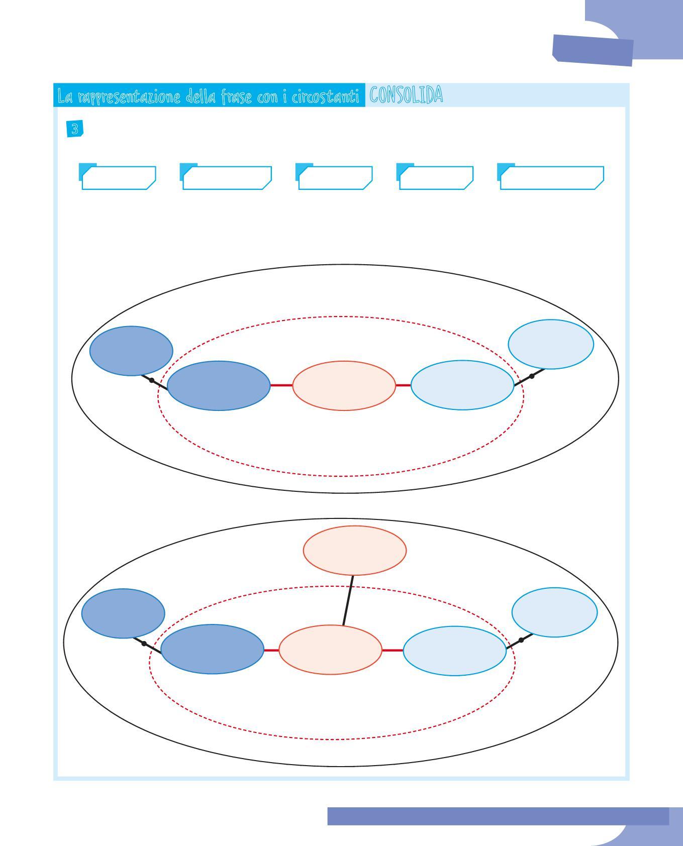 4 Aggiungi alle frasi minime i circostanti scritti nei cartellini. Poi rappresentale sul quaderno negli schemi grafici.