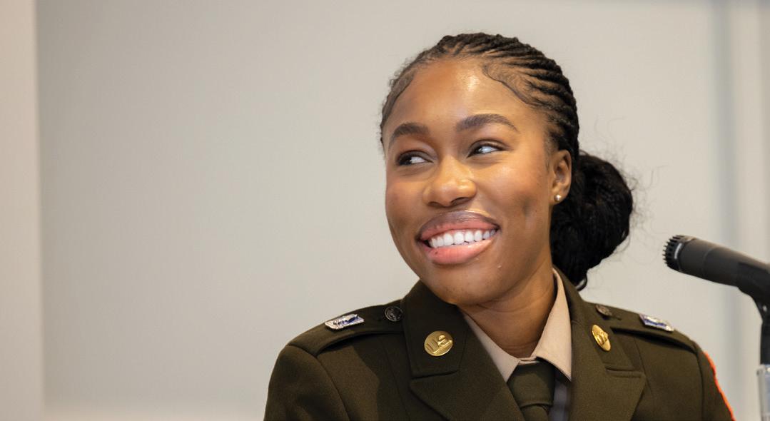 on facing challenges with courage. She recalls her apprehension in competing for an ROTC scholarship, a decision that marked the beginning of her military journey. This story highlights an essential leadership trait: the willingness to embrace challenges despite fear and uncertainty.