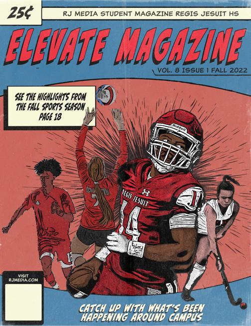 Thank you for another wonderful start to the school year and for your continued readership to our magazine. We are excited to present our first official issue of Elevate Magazine for the 2022-23 school year. We are grateful for the gifts of our team and their undeniable talents art, writing, and design. They continue to make Elevate a place for creative self-expression. Our team is also very thankful for the guidance and grace of our two excellent advisors, Mr. Adam Dawkins ‘98 and Mr. Shane Monaghan ‘09, who never fail to foster a safe and fun learning environment surrounding student media at Regis Jesuit High School.