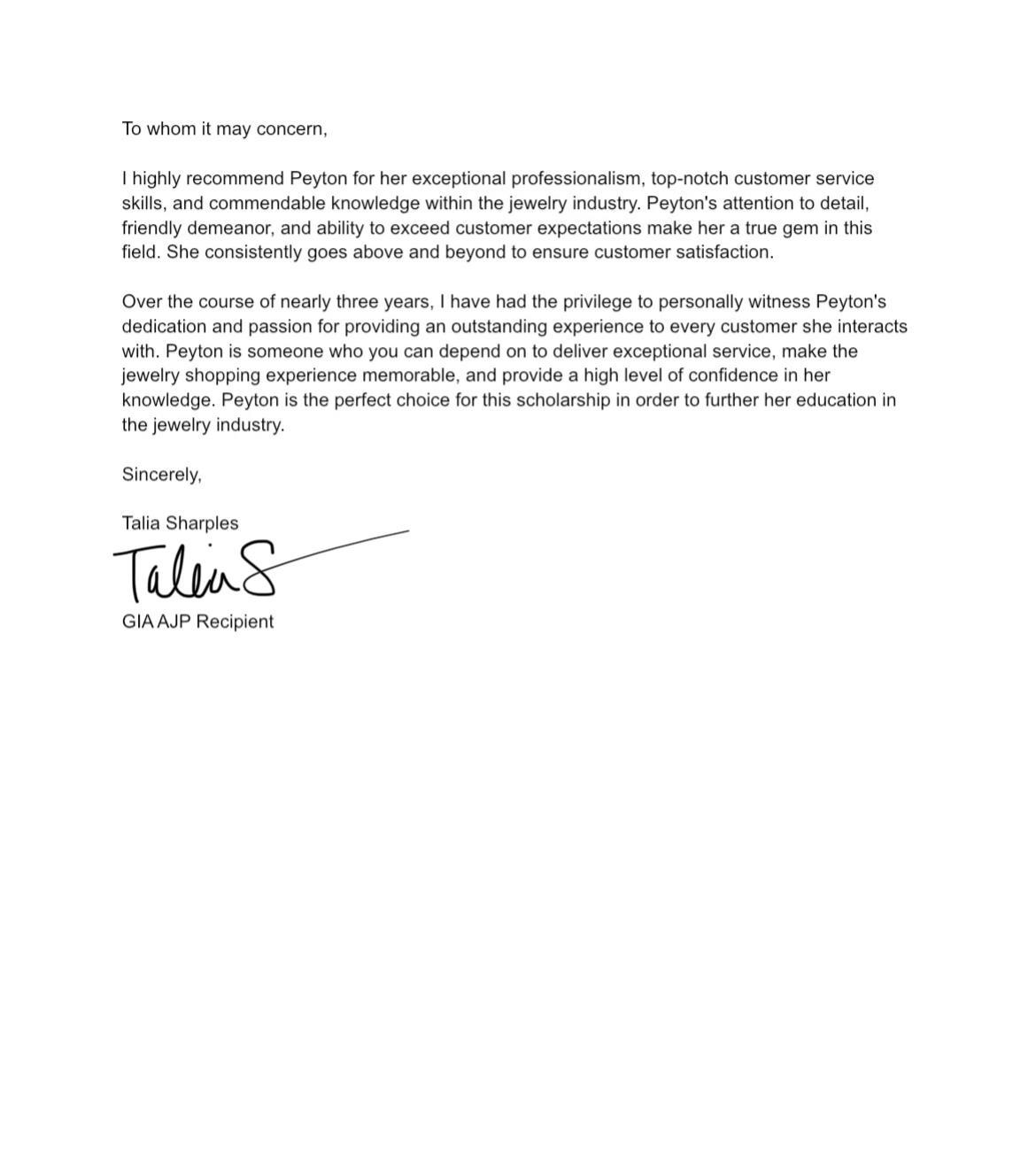 I believe Paige would be a great candidate to receive an RJO scholarship based on her ability to apply what she learns and eagerness to learn more about the jewelry industry. She is an asset to our company and we would love to see her expand her knowledge!
