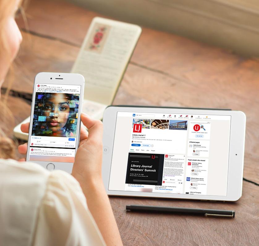 TARGET: Library Journal Magazine followers on Facebook (93k+) Instagram (17k+) and Linkedin (53k)