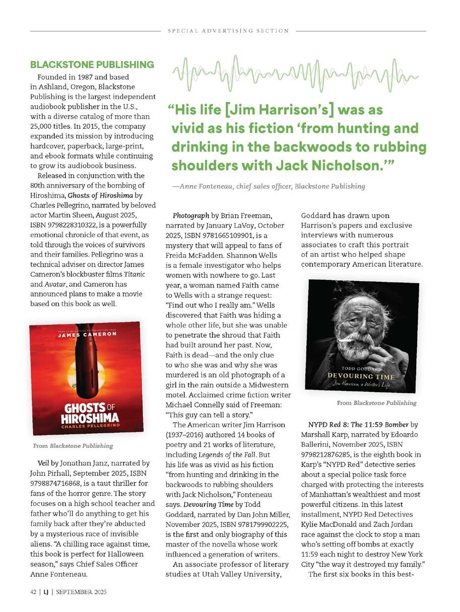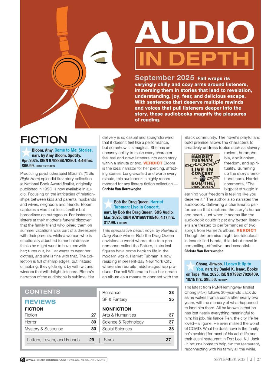 Audiobooks are increasingly vital to collection budgets, with reviews featured yearround. Library Journal delivers over 500 audiobook reviews annually, including two in-depth special editions on audio.