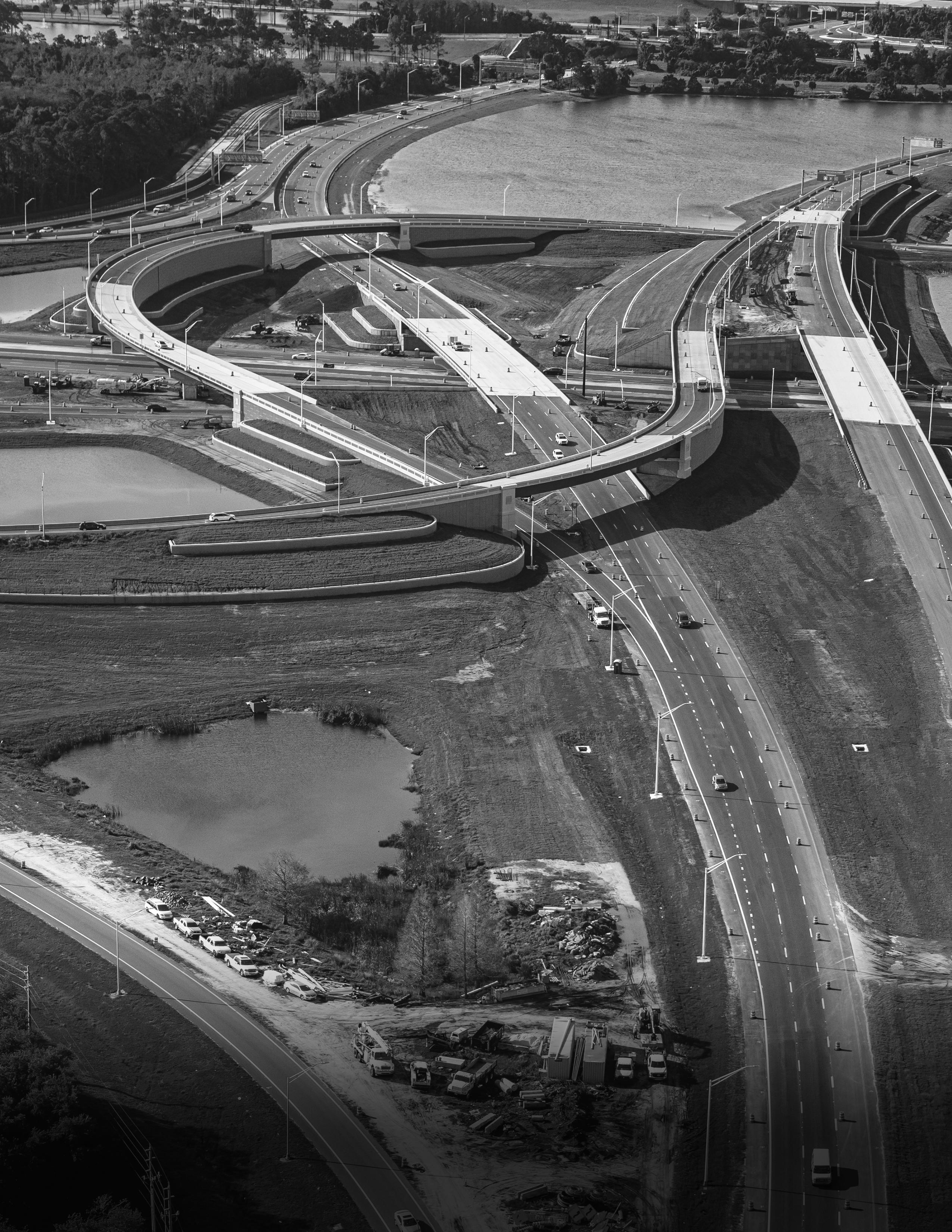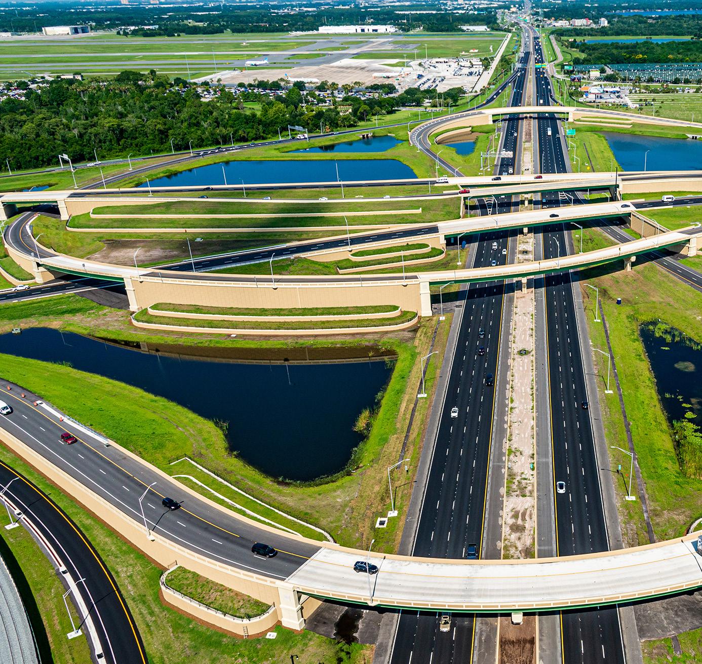 DRMP served as the lead designer for this new 2.63-mile limited access toll road and system-tosystem interchange that connects I-4, SR 417, SR 429, and accommodates future express lanes. This $263.3 million design-build project includes 20 new bridges and two bridge widenings, with bridge types being a combination of single and multi-span bridges, concrete Florida-I Beams, and steel plate girders, and 25 stormwater management facilities to address water quality, attenuation, and floodplain impacts.