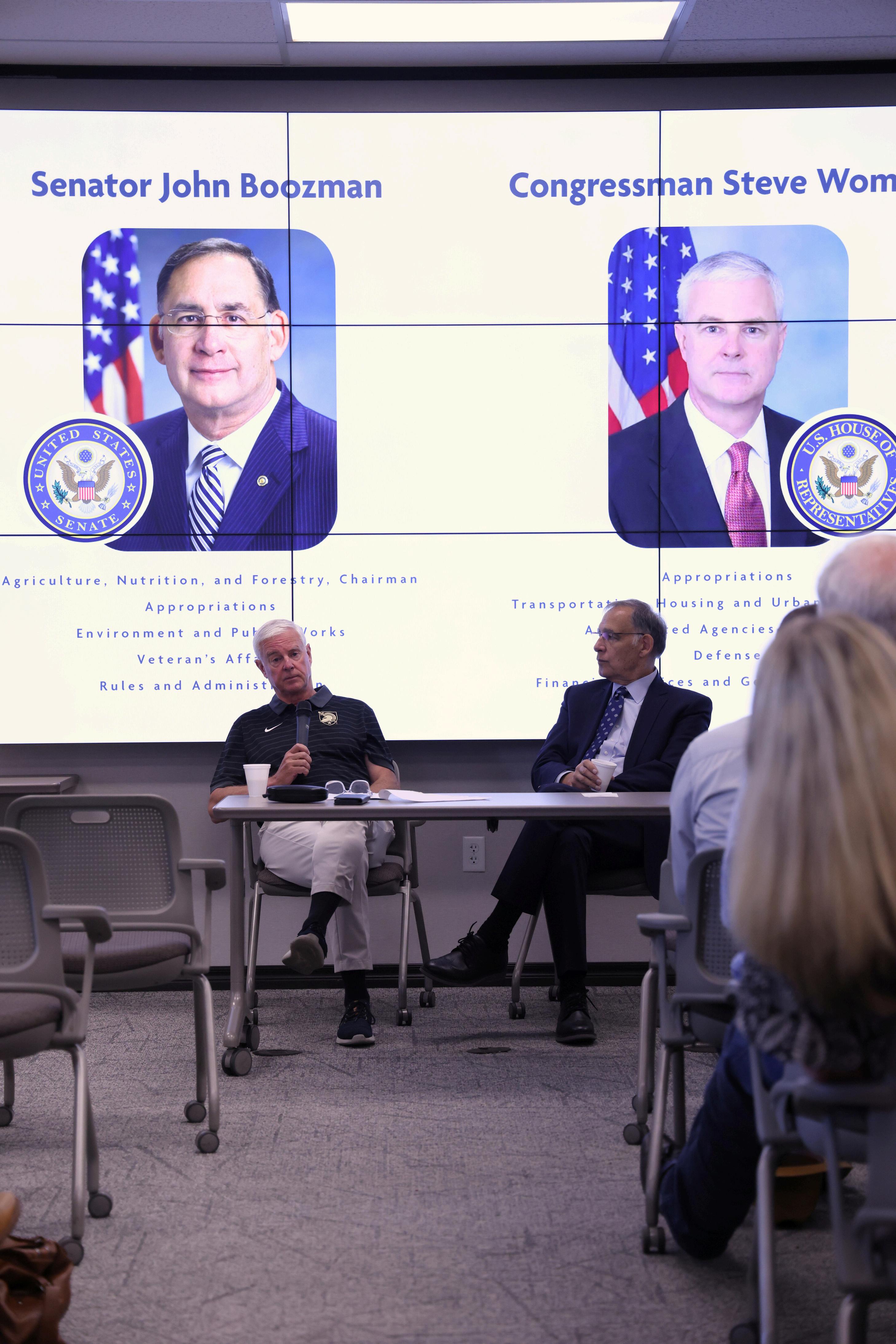 Through a panel discussion, both Senator Boozman and Congressman Womack addressed issues happening at the federal level and how those will impact our local community in addition to taking questions from attendees.