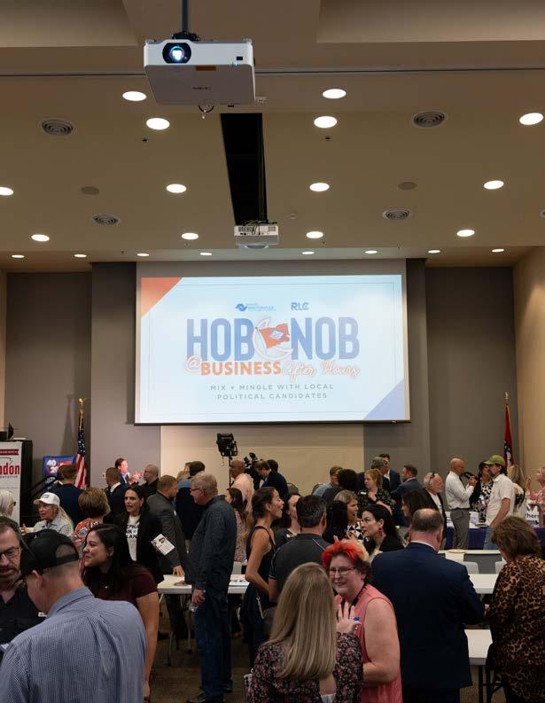 The Rogers Lowell Chamber (RLC) and Greater Bentonville Area Chamber of Commerce (GBACC) partnered to host a Hob Nob with local political candidates at their joint August Business After Hours networking event August 22nd. It was an opportunity for the community to meet with those shaping future policies impacting the area. Hear from attendees on page 4 >>>