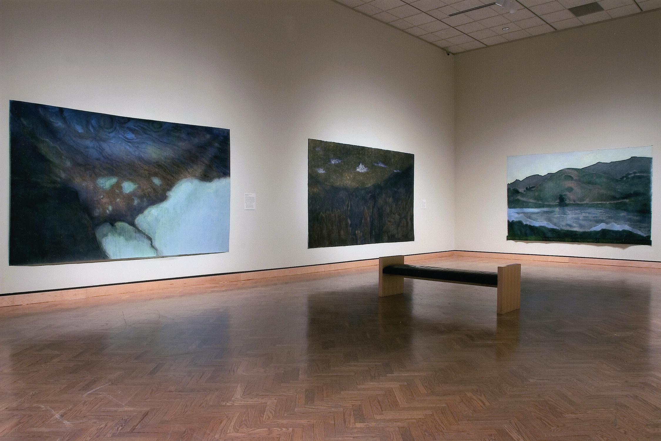 Installation view of Stevens’s 2005 solo exhibition at the Minneapolis Institute of Art. On view from left to right: Lagoon, Fort Cronkhite, Marin Headlands (2002); Hudson II (2000); Connemara (Rock Pool) (1999-2001, in the collection of Joslyn Art Museum).