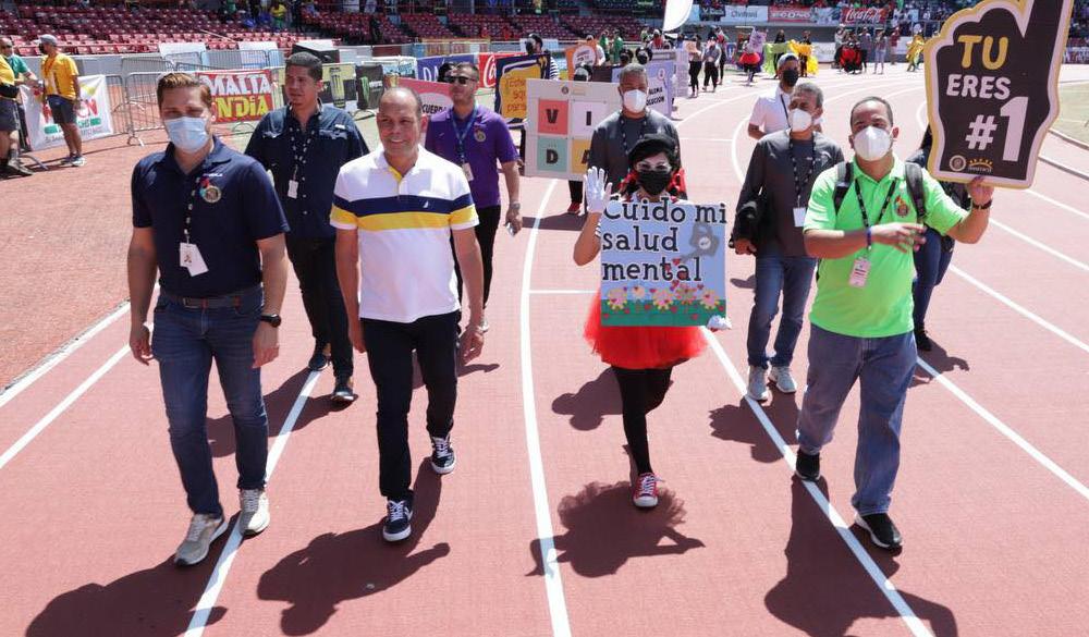 Por otro lado, como parte de las estrategias para promover mensajes motivacionales y positivismo que contribuyan a la salud emocional del individuo, facilitadores del Proyecto Conéctate de ASSMCA se entremezclaron con los asistentes a las Justas de la LAI para realizar un flashmob con los personajes de mimos. Luego, se unieron al administrador de la agencia, Dr. Carlos Rodríguez Mateo, y otros compañeros en el desfile de instituciones atléticas para darle mayor visibilidad y fuerza al mensaje que promueven.