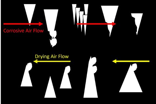 • Keyhole passage shape – Rounded, half-tubes near the ceiling above a steep-walled, slot canyon re sult in this distinctive and common cave passage cross-section morphology. Half-tubes form from convective, acidic air currents rising in the middle of the passage then deflecting off the ceiling and down the walls as they cool.