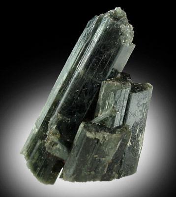 Intergrown crystal mass of green-black actinolite. The delicate acicular crystals were encased in calcite that was dissolved away to reveal the actinolite. Goshen Stone Co. Quarry, Hampshire County, Massachusetts. 3.5 cm in long dimension. Used with permission from John Betts Fine Minerals, Inc.a