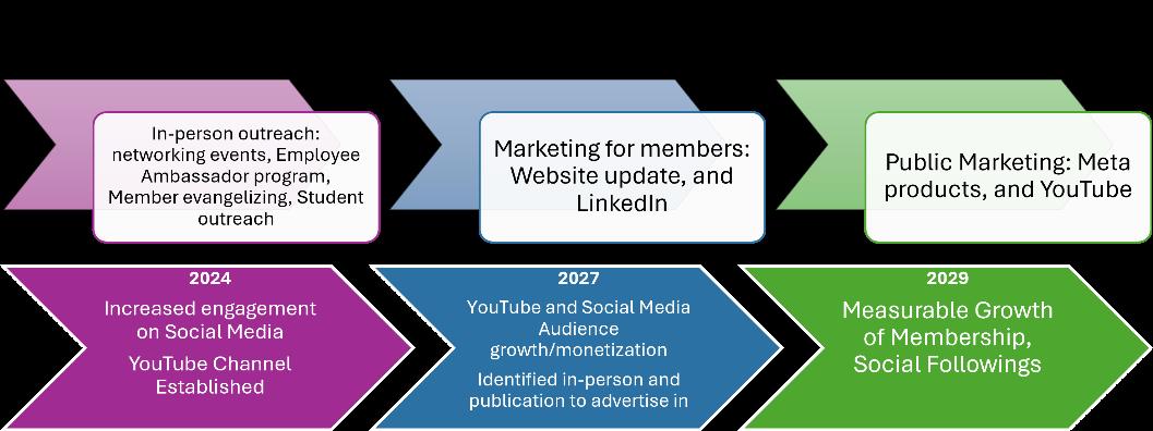 If our work is successful in 2029 our marketing efforts will have resulted in measurable growth of our membership, growth of our social media following, and a strong understanding of our cross appeal with other associations in the geoscience space.