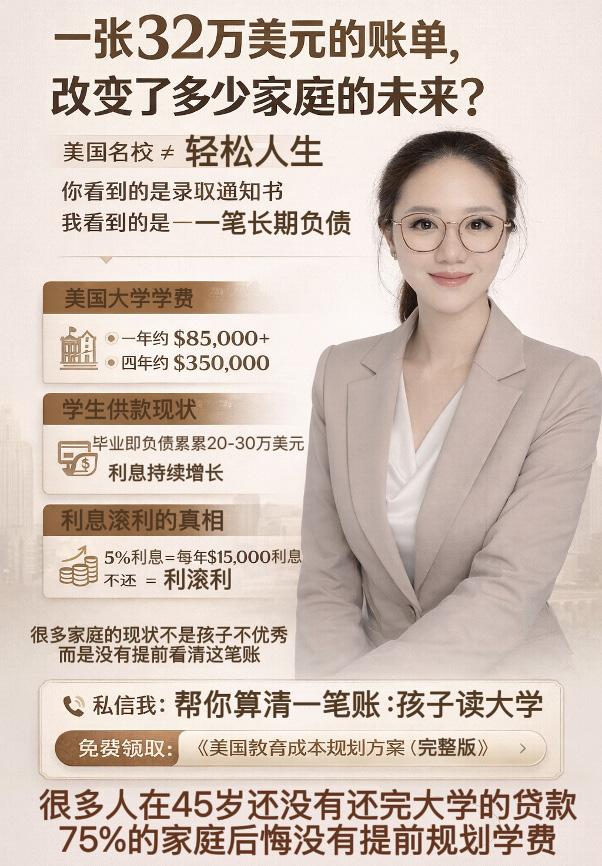 在社交媒體上,我們經常會看到類似 這樣的畫面:一個年輕人舉著一張貸 款清單,上面寫著——Total Current Balance: $325,200.75。很多人第一反 應是震驚:讀書,真的可以負債30萬美 金嗎?答案是:可以,而且在美國,這 並不罕見。