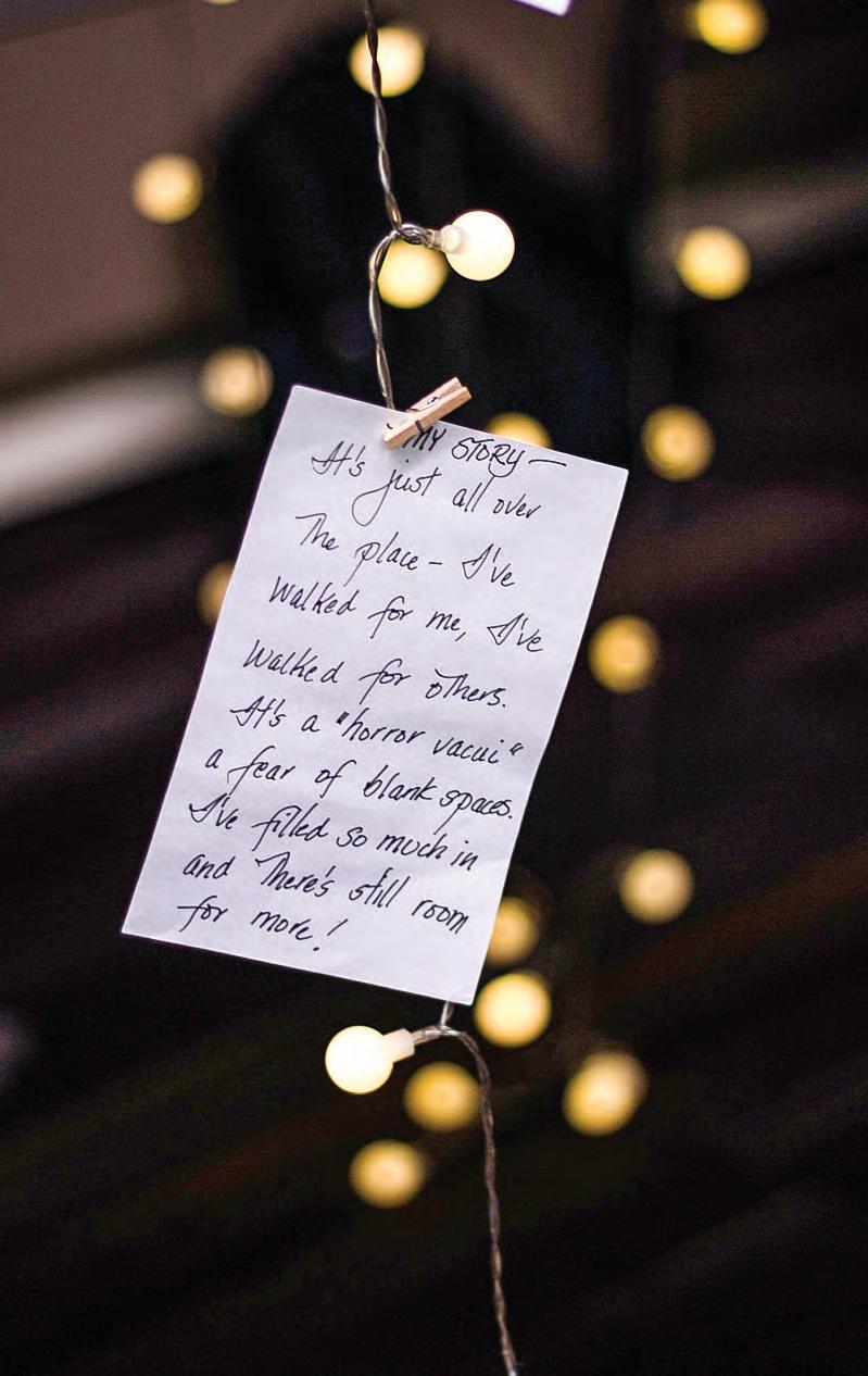 3. A story card at the Fort Collins Book Fest Feb. 3. A sign was placed on the table above encouraging people to write their story on a piece of paper and hang it on some string lights.