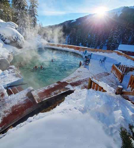 The destination is Granite Hot Springs, constructed by the Civilian Conservation Corps (CCC) in 1933. It has an average yearly snowfall of 400" and a winter water temperature of 112 degrees! Most of the hot springs are a nice even temperature, but if you want 104˚ or higher, carefully squeeze over the slippery rocks where it flows in.