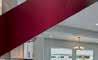Among the many unique features of the renovated community center is the welcoming reception desk area that serves as a hearth, a centerpiece. It’s designed to evoke the warmth and spirit of a campfire by the integration of backlit stone that glows. The stone sits adjacent to Shou Sugi Ban wood panels, which is a centuries-old Japanese technique of charring wood for preservation.