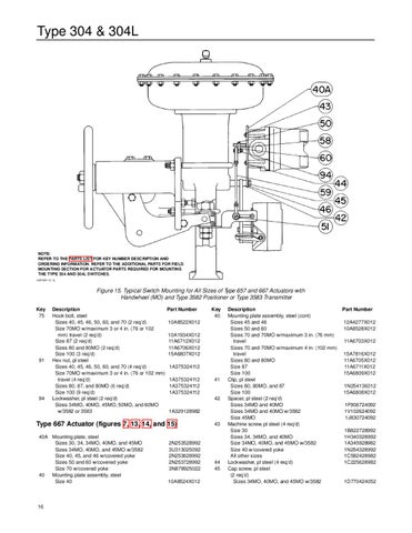 Type 667 Actuator (figures 7, 13, 14, and 15) 40A Mounting plate, steel Sizes 30, 34, 34MO, 40MO, and 45MO Sizes 34MO, 40MO, and 45MO w/3582 Size 40, 45, and 46 w/covered yoke Sizes 50 and 60 w/covered yoke Size 70 w/covered yoke 40 Mounting plate assembly, steel Size 40