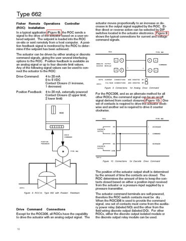 Type 662 Fisher Remote Operations Controller (ROC) Installation In a typical application (Figure 8), the ROC sends a signal to the drive of the actuator based on a user-entered setpoint. The setpoint is loaded into the ROC on-site or sent remotely from a host computer. A position feedback signal is monitored by the ROC to determine if the setpoint has been achieved. The actuator can be driven by either analog or discrete command signals, giving the user several interfacing options to the ROC. Position feedback is available as an analog signal or up to four discrete limit values. Any of the following signal values can be used to connect the actuator to the ROC: Drive Command: