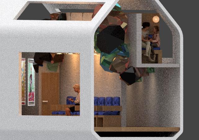 The hospitality and train transportation industry have traditionally been combined by providing sleeping and eating spaces for patrons while they wait to arrive at their destination. In the design on this train car, it goes beyond the old train car experience. While traveling patrons have the oppertunity to browse an art gallery. Through the use of Rhino modeling and physical modeling, the art gellery/ long distance train ride experience is created.