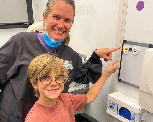From the moment our staff went to get Sophia from her first-grade class at Cowden Elementary, she displayed an excitement and positivity that was absolutely contagious. From showing off the light-up wheels on her wheelchair, to picking out a new sticker, she radiated joy during each of her three visits to repair four cavities. Sophia received treatment valued at $2096 and was so proud to show off her renewed smile to school staff upon her return to class. Dr. Sarah and newest team member, Kassidy, celebrated with Sophia outside the Tooth Truck after her final appointment.