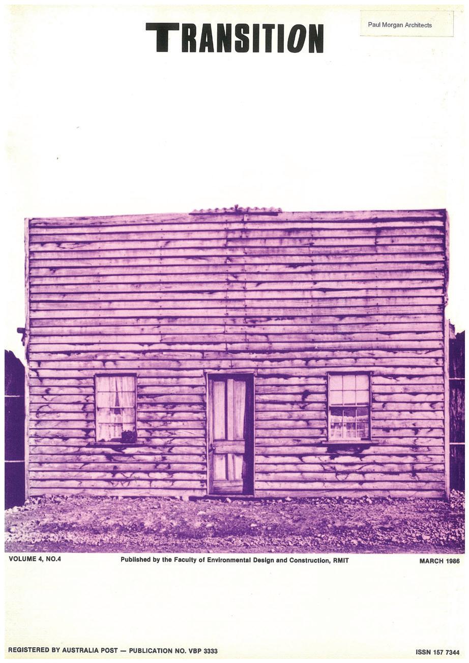 Skills required, and to be developed through the semester include: graphics and communication; organizing knowledge; some research into architects and design history, publications including Transition magazine, as well as other design/ art/ culture magazines including: Tension; Pataphysics; Crowd; Art & Text.