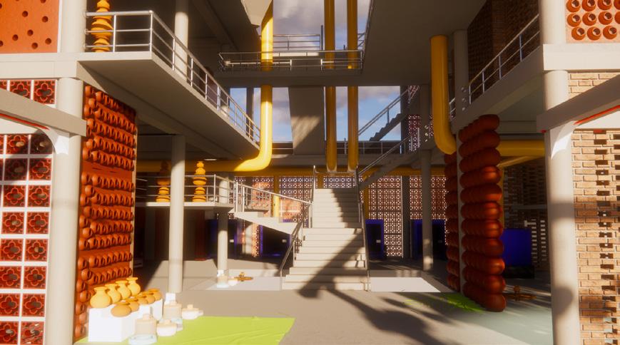 The Fantasia Gallery is designed not only as a space to display artworks, but also to symbolize a bridge of inspiration and creativity. The colorful steel structure acts as an inspirational link between different ideas and art forms.