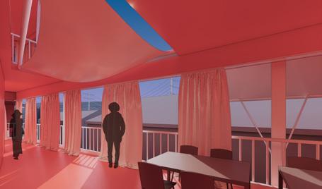 The most public co-working spaces collect past memories of everyone who has passed through. These memories are flattened onto architectural elements, becoming part of the building while their colours fade over time. New people and activities will add fresh colours and vitality to the structure, ensuring it remains dynamic and relevant.