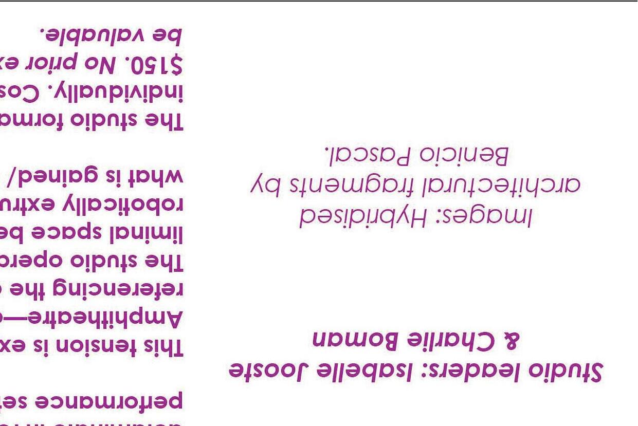 By engaging with these topics, students will gain insight into the intersection their application in architecture. STUDIO LEADERS