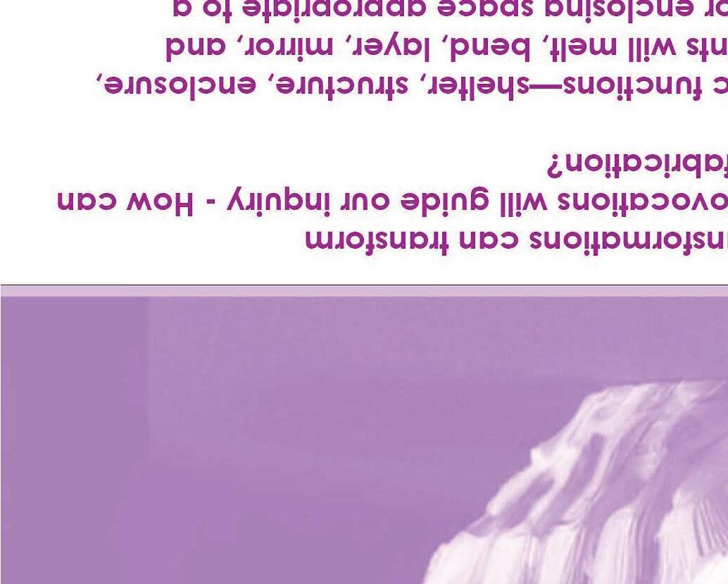 Abstract experiments will evolve into sited interventions as the studio explores new approaches to engaging with the environment. Not in conventional ways that position the environment as something to be protected against (architecture as shelter), but in unconventional and optimistic ways that suggest there is something to be gained.