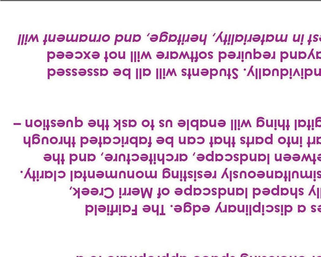 This studio will adopt a mixed individual-partner work approach where some studio decisions will be made collectively as a class through the semester. Assets and research will be made available to all to foster a collegiate atmosphere.