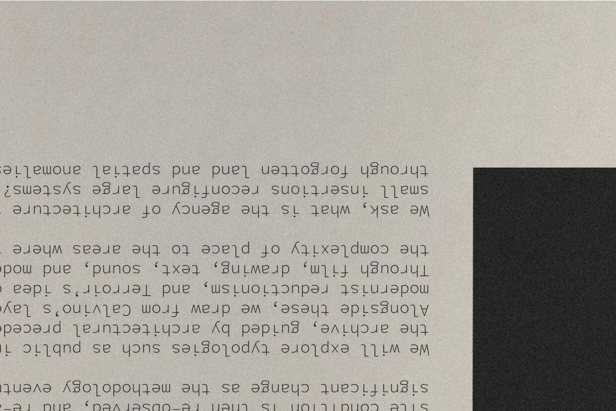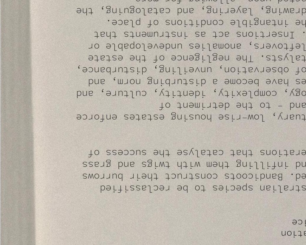 work through descriptive writing, theoretical/poetic/referential writing, drafting, 3D modelling, and physical model making. This work will be a critical, analytical, and editorialised