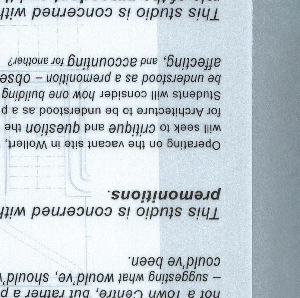 The studio will be undertaking investigations into the memory of place and how this informs a language of place. Students will be exploring a number of design methodologies, design tools, in order to understand the formal nuances of place, context. The role of the architectural precedent will be explored rigorously understanding the various languages that come with building typologies. These methodologies will be implemented for students to design a place of civicness that challenges preconceived notions of what might be initially understood formally.