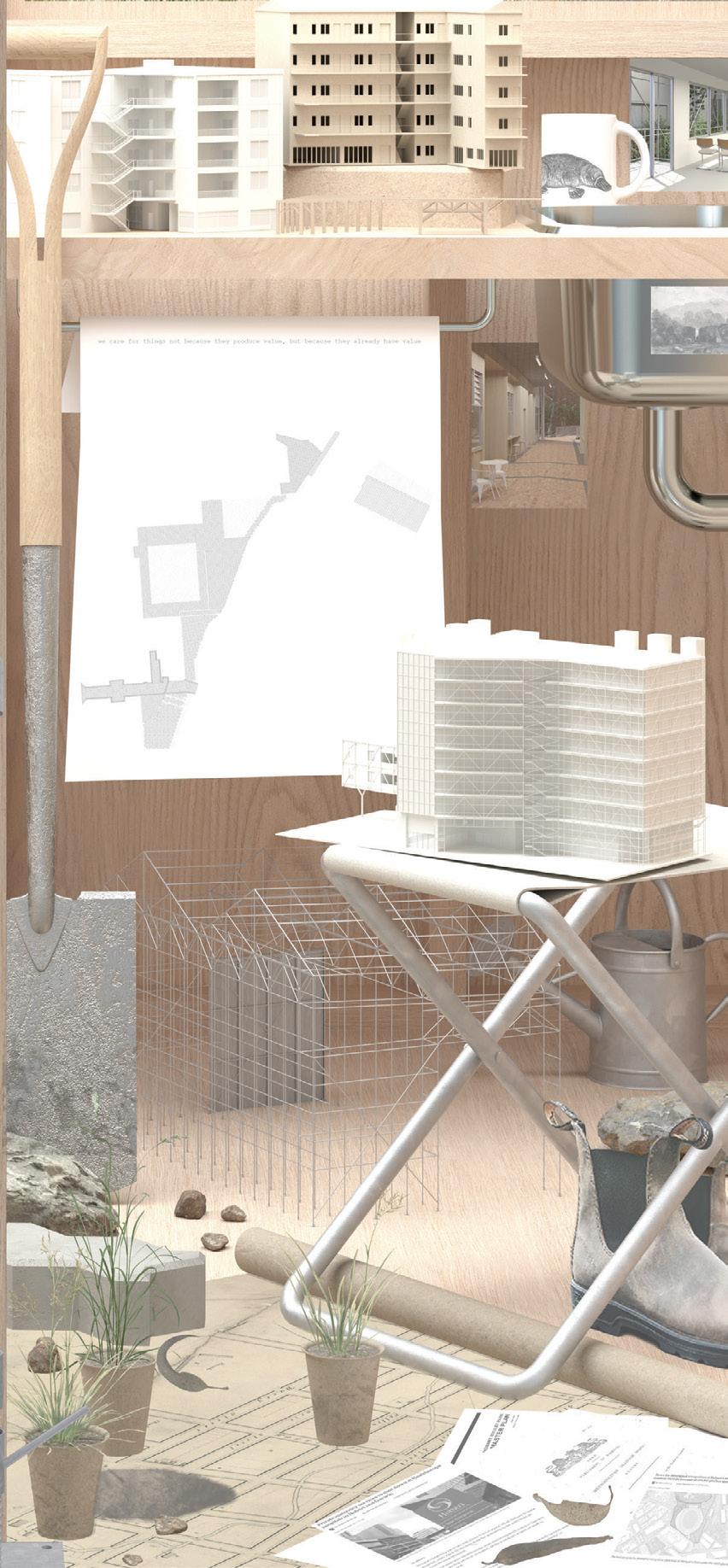 Set within the Montague Precinct in Fishermans Bend, where industrial heritage interfaces with stalled development and environmental pressures, students will experiment with this form to accommodate new housing above and a prescribed cultural program at ground level.