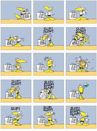 Left Alex Stitt. Frames from an animation featuring Sid the Seagull designed 1981 for the ‘Slip!, Slop!, Slap!’ television campaign. Published with permission from Cancer Council Victoria.