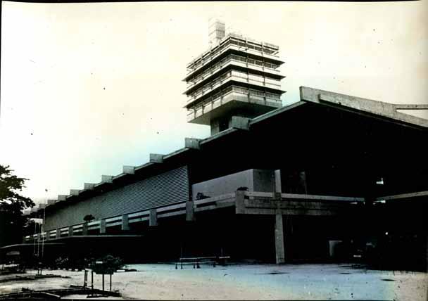 In 1964 Nankivell joined forces with Joyce to enter the competition for the Perak Turf Club grandstand at Ipoh in Malaysia. Joyce’s experience on the design of the Sandown grandstand undoubtedly played a substantial role in determining both the decision to enter the competition and their final success. Joyce was interested in contemporary Japanese architecture and no doubt inspired by Robin Boyd’s recentlypublished monograph on Kenzo Tange, travelled to Japan in 1962 to research Japanese architecture and landscape. Either to prepare for the Perak competition or to carry out site investigations he travelled through South-East Asia in 1964, as did Nankivell the following year. The Perak stadium therefore develops the idiom of the modern racing grandstand worked out at Sandown in a Brutalist form inspired by the same Japanese sources that had produced the Total House car park.