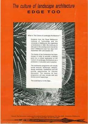 Documents and objects, including programmes and a T-shirt, relating to the rmit Landscape Architecture programme and to the Edge Conference (1983) and Edge Too Conference (1992) held in Melbourne.