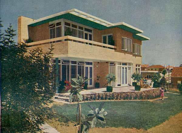 Anatol Kagan and Associates was located at 549 St Kilda Road, Melbourne, and his staff initially included Blumin, R Barnard-Brown araia and William Robert (Bill) Miller. 13 They produced significant residential work in the affluent suburbs of Kew, Caulfield and Brighton, favouring rectilinear modernist compositions, often with protruding bays and timber-mullioned window walls shaded by deep eaves. 14 Masonry, often brick (face brick or rendered) was their preferred medium, alternating with timber cladding, and the influence of Roy Grounds, Frederick Romberg and Robin Boyd is evident.