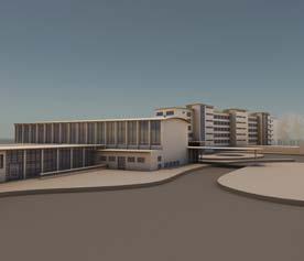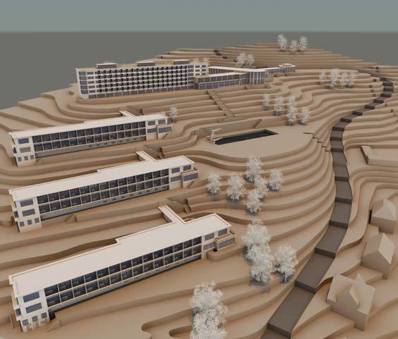Romberg’s final Diploma project, a hotel complex, was located on a hill overlooking Lake Zurich, and was to replace the existing Dolder Grand Hotel. In the proposal the main block swept along the edge of a flattened area of hill, and contained serviced apartments, a restaurant, stage and cylindrical dance hall. Three additional blocks of apartments with café and courtyard were tiered down the slope beneath the main compound, and were serviced from the main building by a series of underground cable cars. Ironically, where Romberg’s thesis was only a proposal, a fellow graduate would become the architect for additions to the original 1899 Hotel some years later.3