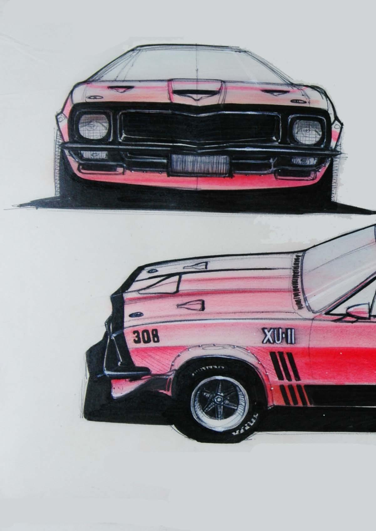 Phillip Zmood, drawings of styling exercises for HQ Monaro Coupe roof concept.