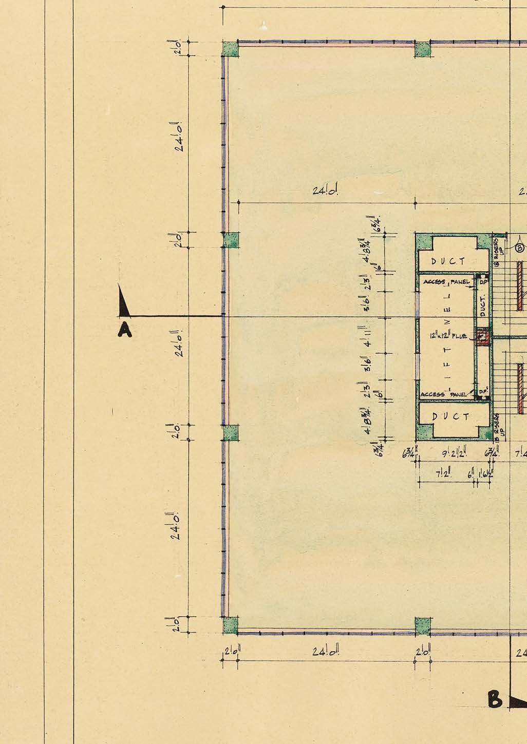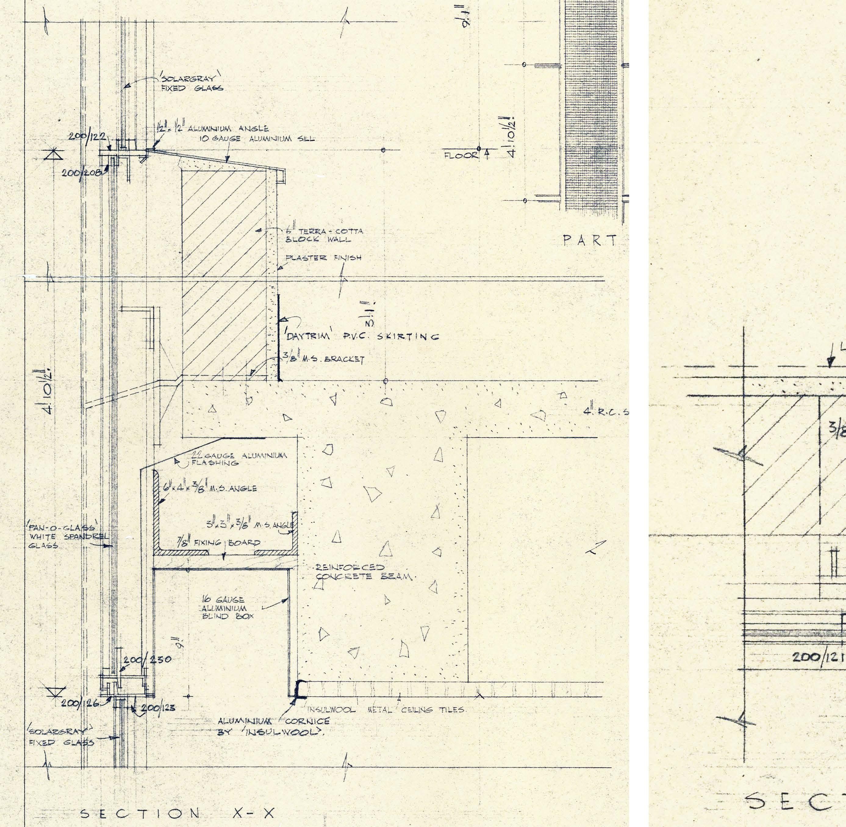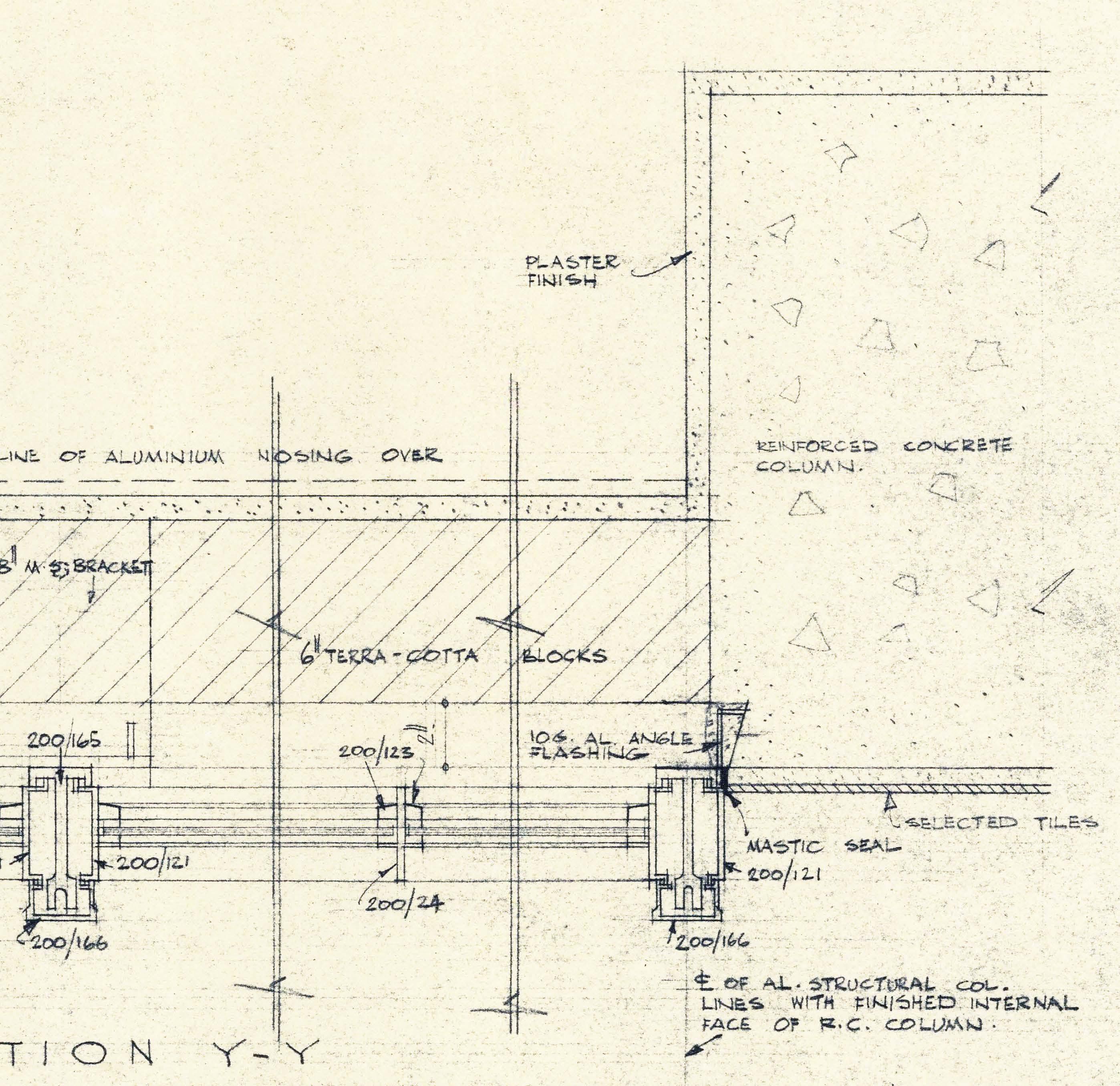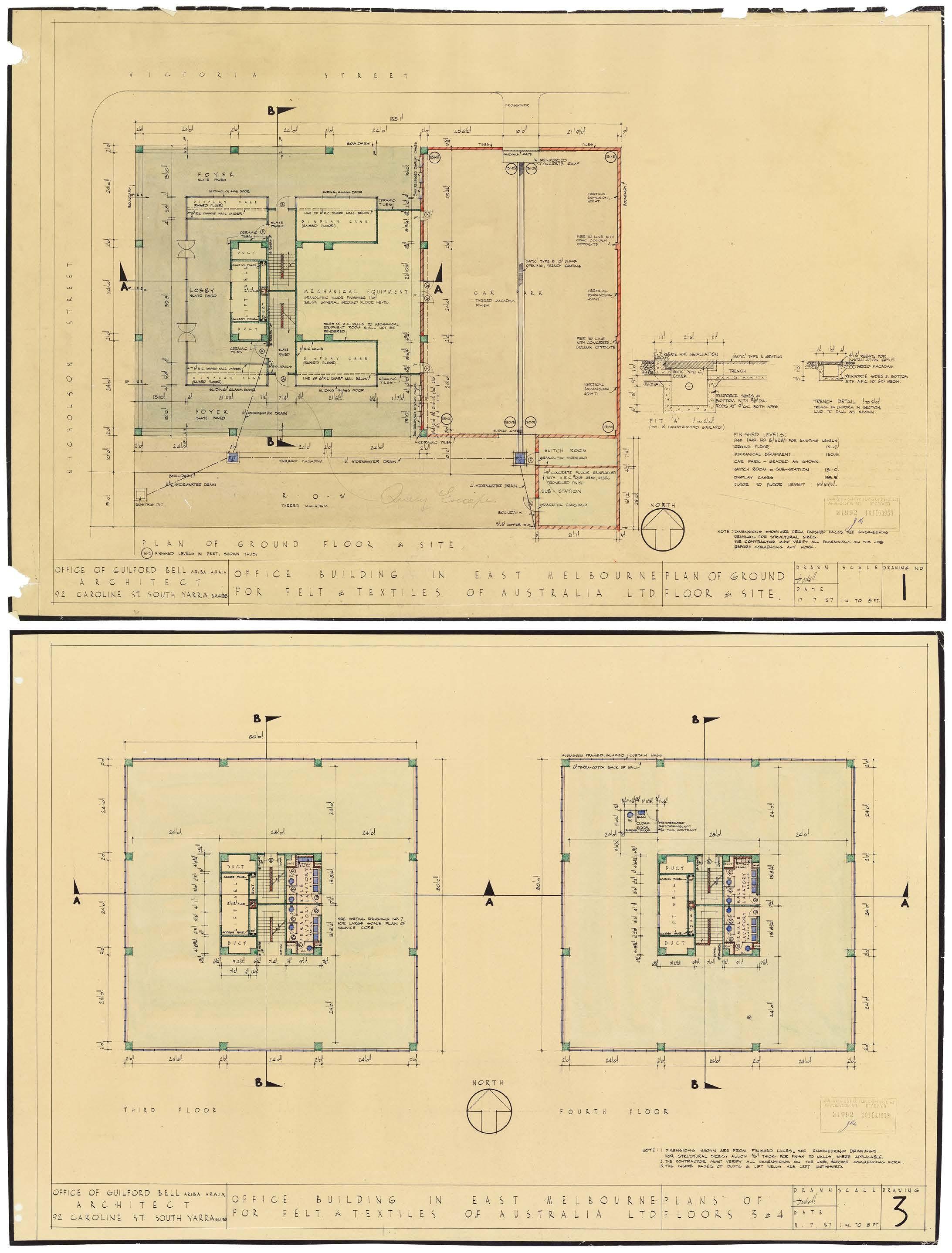 Below David Godsell and Office of Guilford Bell, Feltex House, North elevation, section and stair details, 1957. Public Record Office Victoria