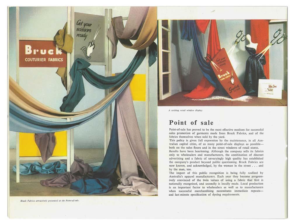 Right Pages from Bruck Fabrics brochure, (Wangarratta, Vic: Bruck Mills (Australia) 1954), University of Melbourne Library, published with permission of Bruck Textiles Pty Ltd
