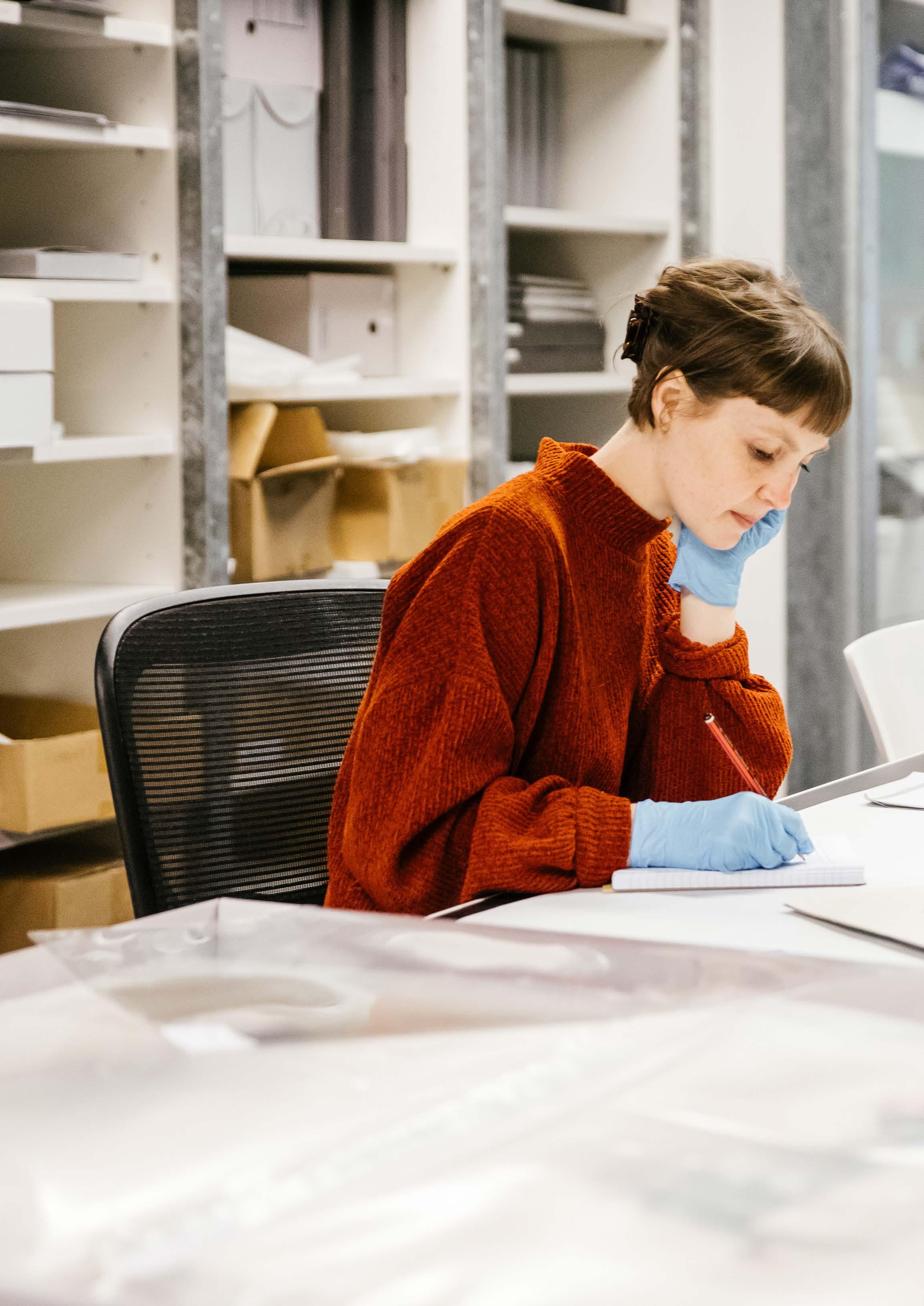 This Page Emily Bramich, Conservation intern with RMIT Design Archives Collection, RMIT Design Archives 2019, Photography by RMIT University.