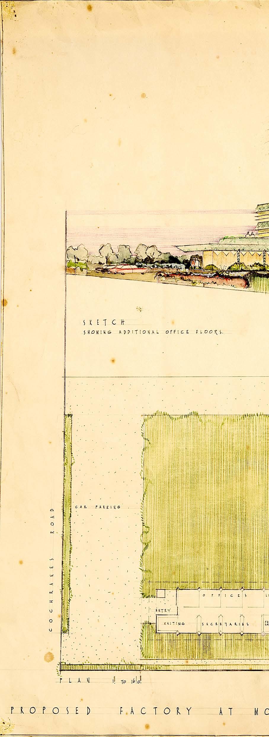 To date, most documentation on the manufacturing industry in post-war Australia has focussed on economic and social historical accounts. Little has been written on the architecture of the Australian factory apart from often comprehensively detailed conservation studies produced by the heritage profession in response to a complex’s imminent demolition or heritage protection or the sale of an extensive industrial site. Survey studies of post-war heritage, local and company histories similarly provide important background overviews. Agencies like Heritage Victoria and the National Trust of Australia (Victoria) have responsibly documented buildings, places and their social significance. The stylish modern factory complex for Kodak (Australasia) Pty Ltd in built from 1957 and designed by Harry Norris, for example, was classified by the National Trust in 2005 but has since been demolished. By contrast, the Fletcher Jones Factory and Gardens at Warrnambool established from 1948 and with numerous additions until 1974, touted by its founder as a “Modern New Decentralised Garden Factory”, was heritage listed at a state level more for its enduring social and historical significance than for any contribution to a history of manufacturing, architecture and design.11