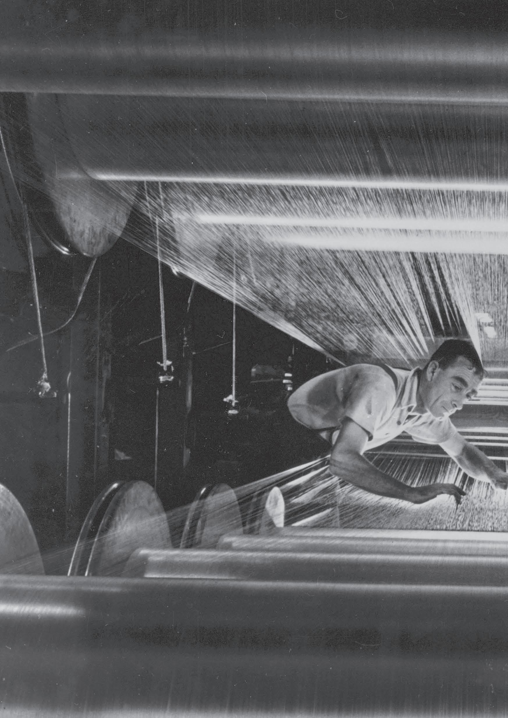 Cover and Inside Cover Rayon loom tuner, Bruck Mills, Wangaratta, 1950 Photograph: Wolfgang Sievers. National Library of Australia (detail)