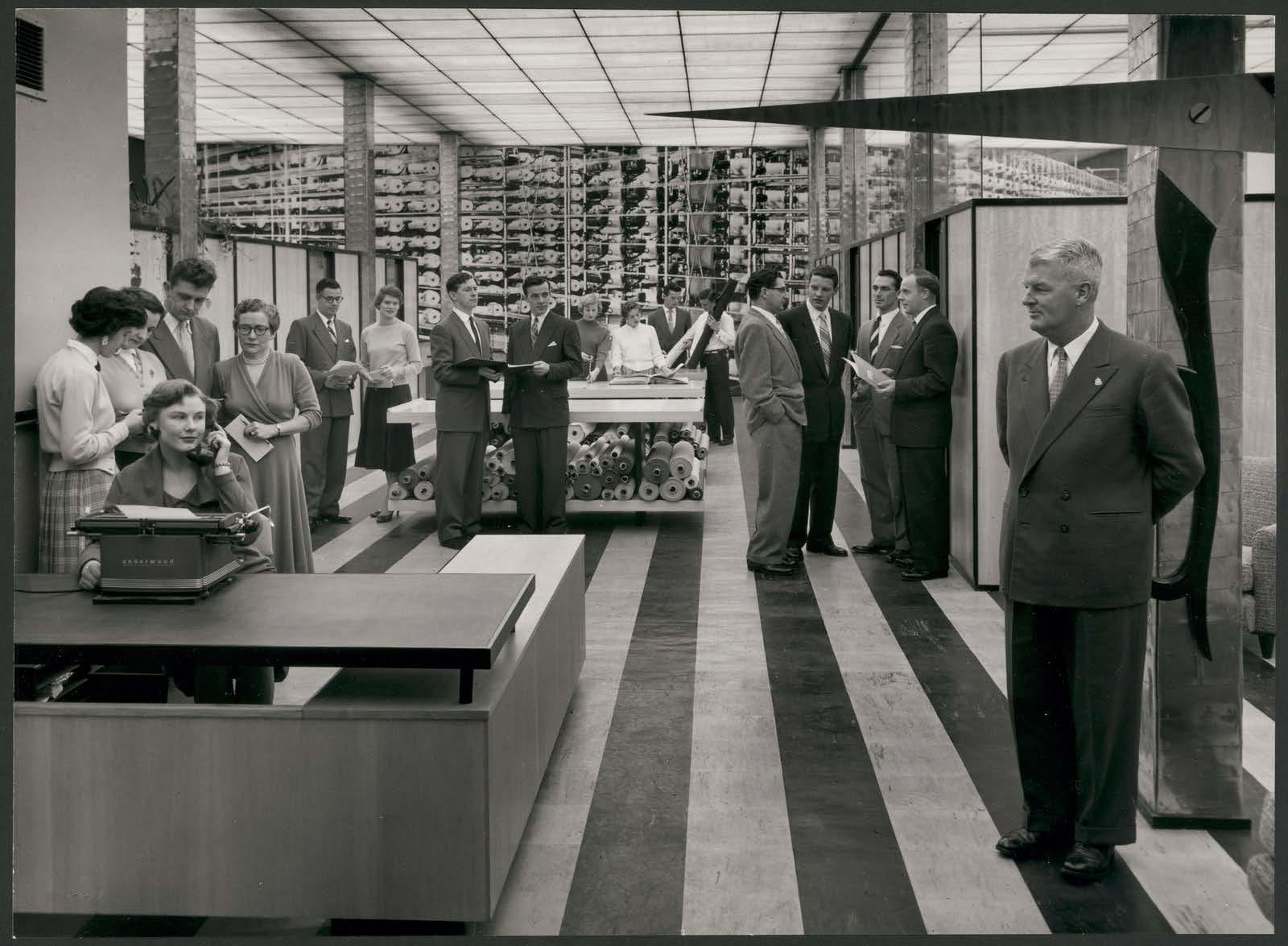 Right Manager’s Office, ETA Factory, Braybrook, 1961, Mural by Eric Thake, photographer unknown, RMIT Design Archives