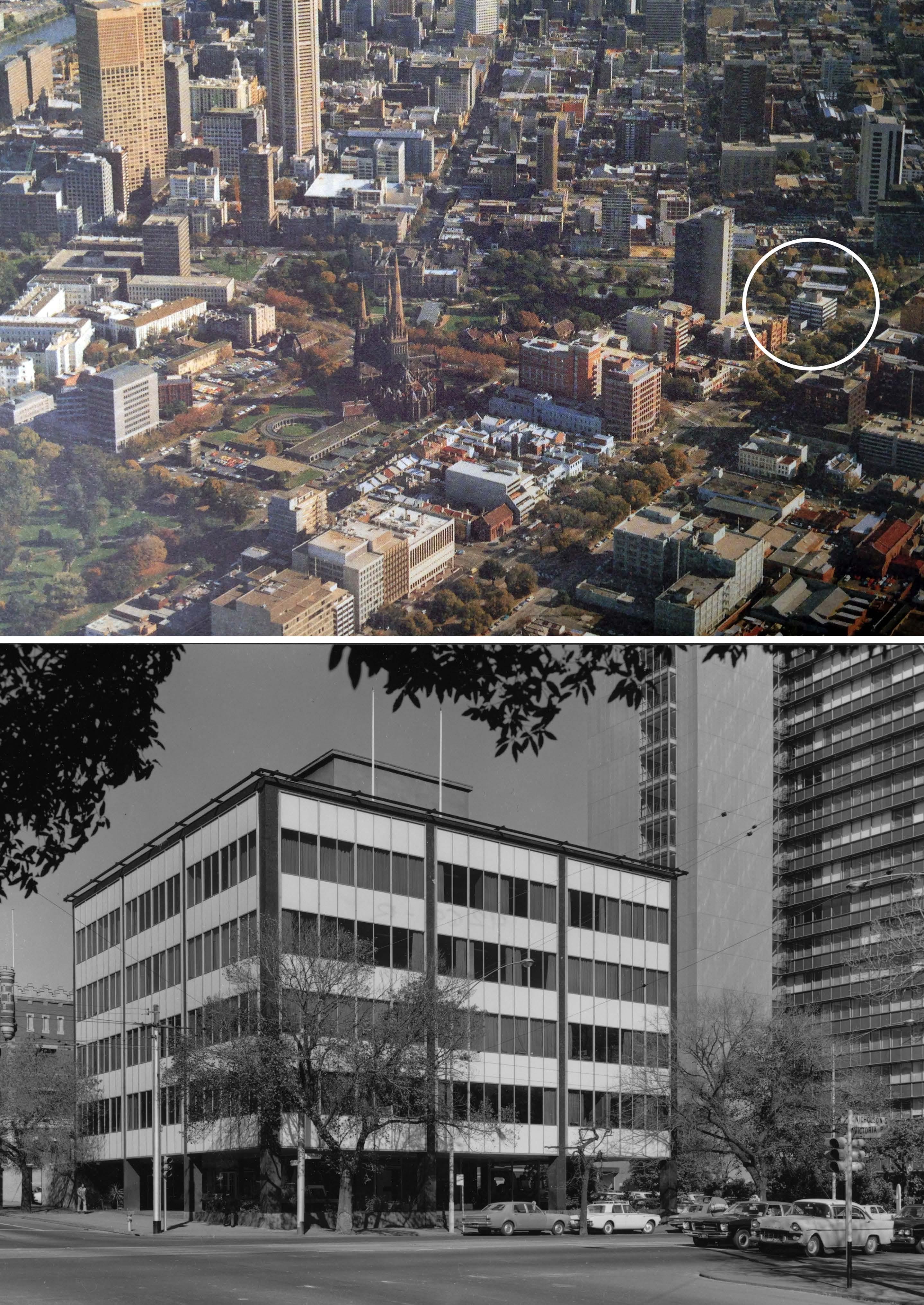 Designed in 1959 by Guilford Bell and David Godsell, Feltex House adjoined ICI House in East Melbourne and Marfella discusses its design as both a study in post-war, Americaninspired office typology and an instance of a changing urban morphology which saw major industrial and manufacturing concerns establish their headquarters in central Melbourne.