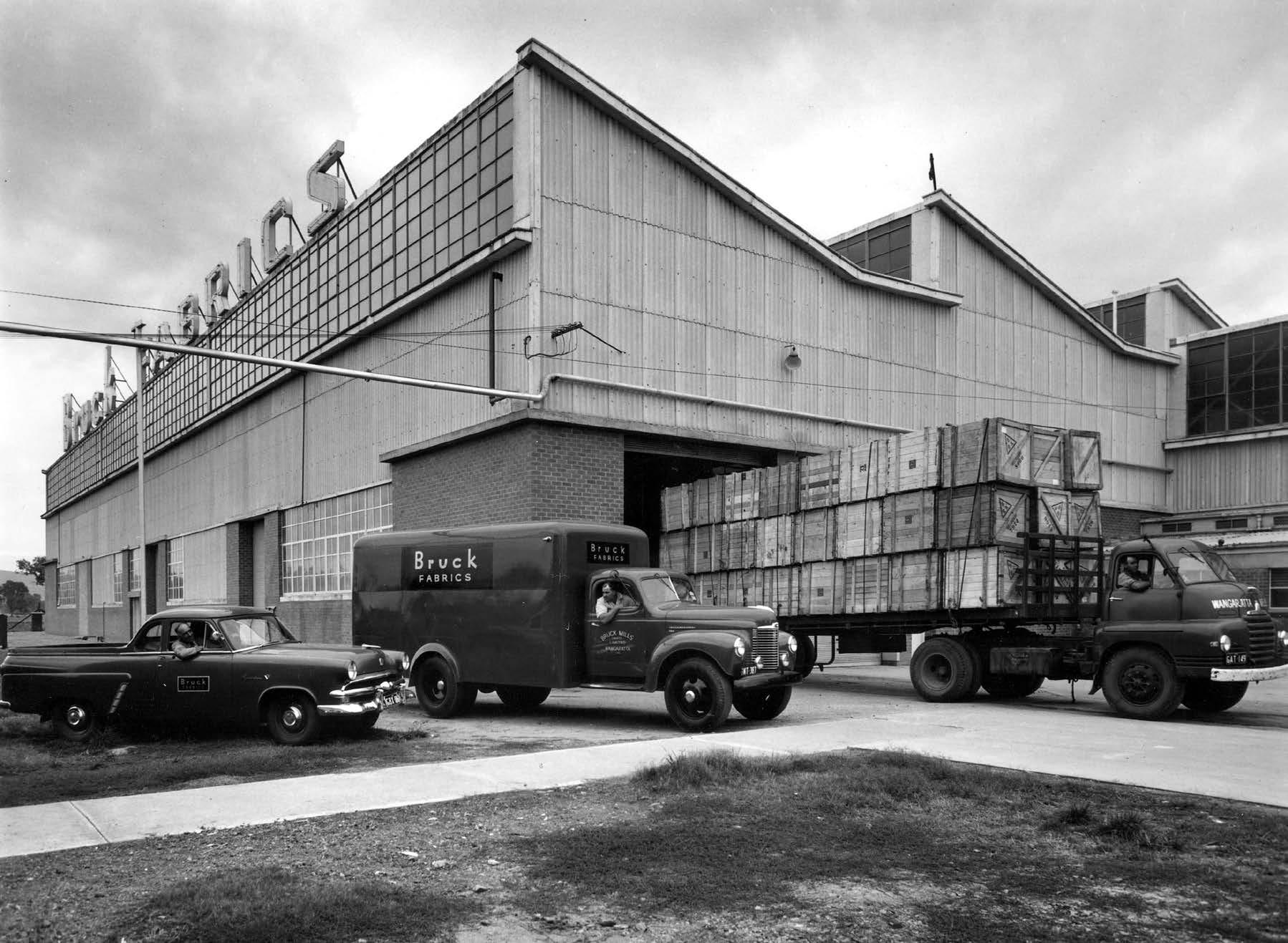 If there was one example in the 1950s that appeared to create a design bridge from manufacturing to point of sale and at a large scale, typify post-war urban planning aspirations for the decentralisation of Victorian manufacturing, involve a migrant labour force, and, which, remarkably, continues to operate today, it was Bruck Mills (Australia) Ltd., the producer of Bruck Fabrics, specialist in production of synthetic textiles.
