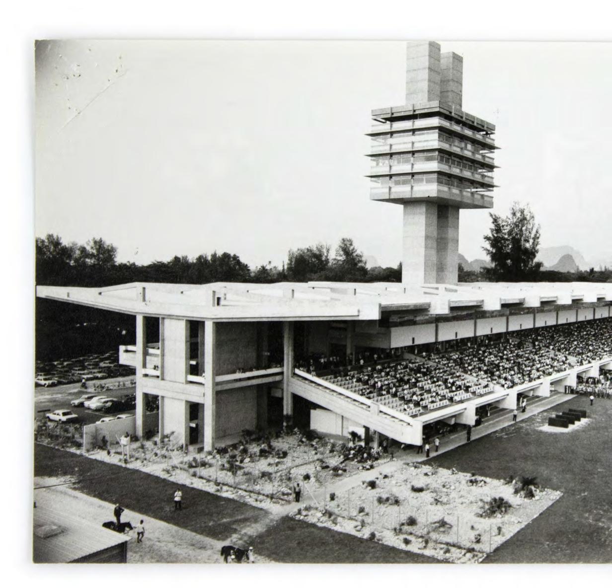 At Ipoh, Joyce and Nankivell ran their window and spandrel detailing, almost identical to the Total Car Park’s, right out to the edges instead of putting it in a large shadow box as they had done in Melbourne. Joyce and Nankivell combined this with the engineering of large cantilevers that they had worked on earlier for Bogle & Banfield and Bill Irwin at Sandown Racecourse. The Sandown grandstand is a direct precursor for the Ipoh Racecourse, which Joyce, Nankivell and David Watson entered privately as competitors, before winning the Malay commission in 1964. rmit ’s Design Archives have most of its essential drawings, and these show modifications to the original competition design in the towers and the back wall areas