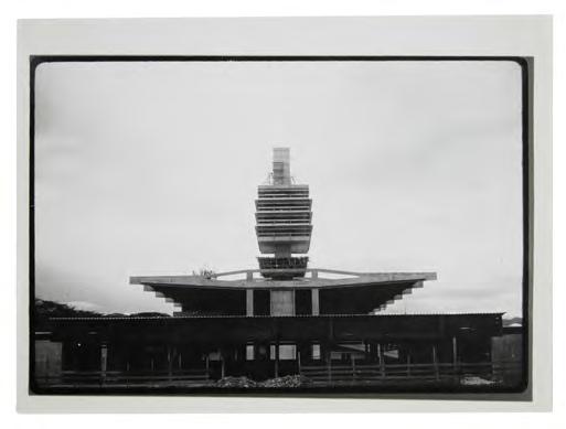 of the main grandstand space. The whole structure was built between 1967 and 1971, in raw, often cantilevered concrete and applied steel in crimped sheets, a combination Frederick Romberg had recently used on the University of Melbourne’s Microbiology Building (1965–68).15 Joyce and Nankivell then used these materials as basics for both the High Commission building and the diplomatic staff housing that accompanied it. The grandstand’s image was indeed spectacular, its observation towers projected against Mount Korbu as a backdrop.