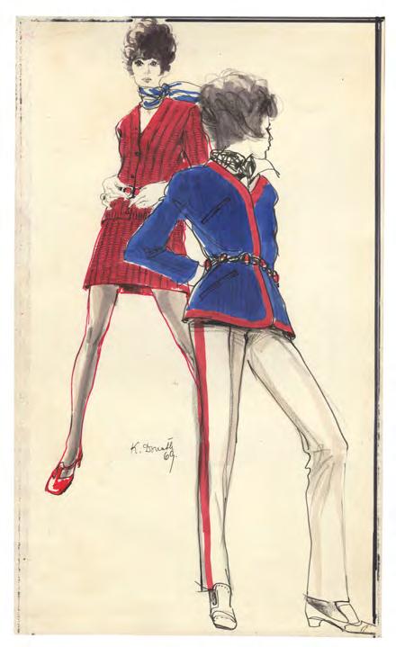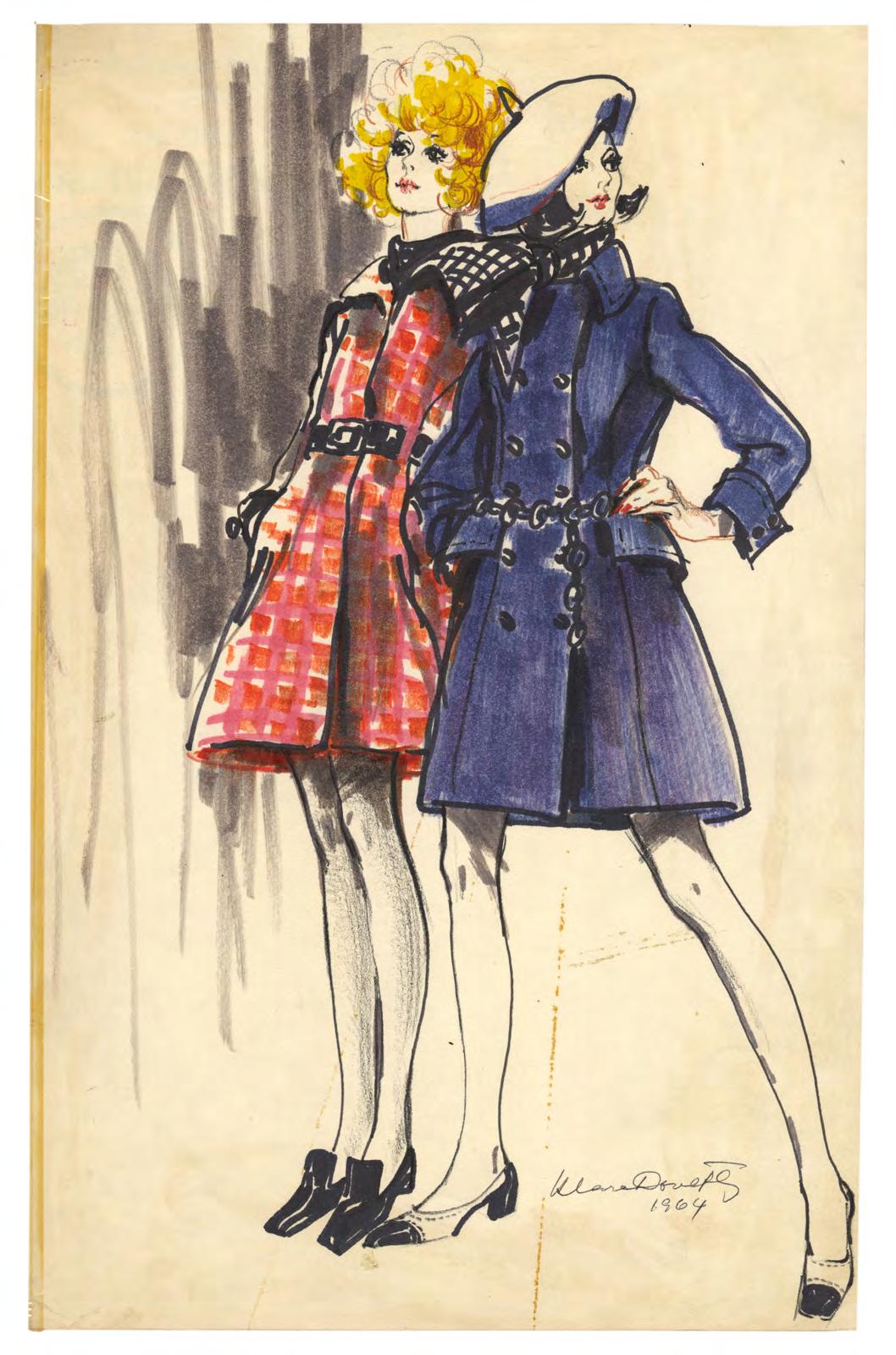 beautifully, but to translate them into desire. She brought an artist’s understanding of proportion and composition to advertising illustration—an approach rare in the local industry at the time. Her figures were never mannequins; they moved, conversed, and inhabited the picture space with narrative energy. The 1960s saw an extraordinary shift in the imagery of women. Donáth’s work captured this transition—from the poised elegance of early-sixties couture to the expressive, liberated attitude of the late 1960s. Her figures echo the new rhythm of Australian urban life that belong to a world of cafés, art openings, and city streets rather than 1930s drawing rooms. Though her training was European, Donáth absorbed the vitality of Australian modernity—Pop colour, youth culture, surf tones—and translated it into her own idiom. Critically, her drawings also challenged the male gaze that dominated mid-century advertising. Donáth’s women look back at the viewer on their own terms. Their elegance is active, not decorative and their beauty derives from intelligence and motion. Her decade of work in Adelaide and Melbourne helped define how Australian women saw themselves during an era of rapid social and aesthetic change and contributed to the visual identity of Australian fashion across the 1960s— a fusion of European sophistication and local spontaneity and innovation.