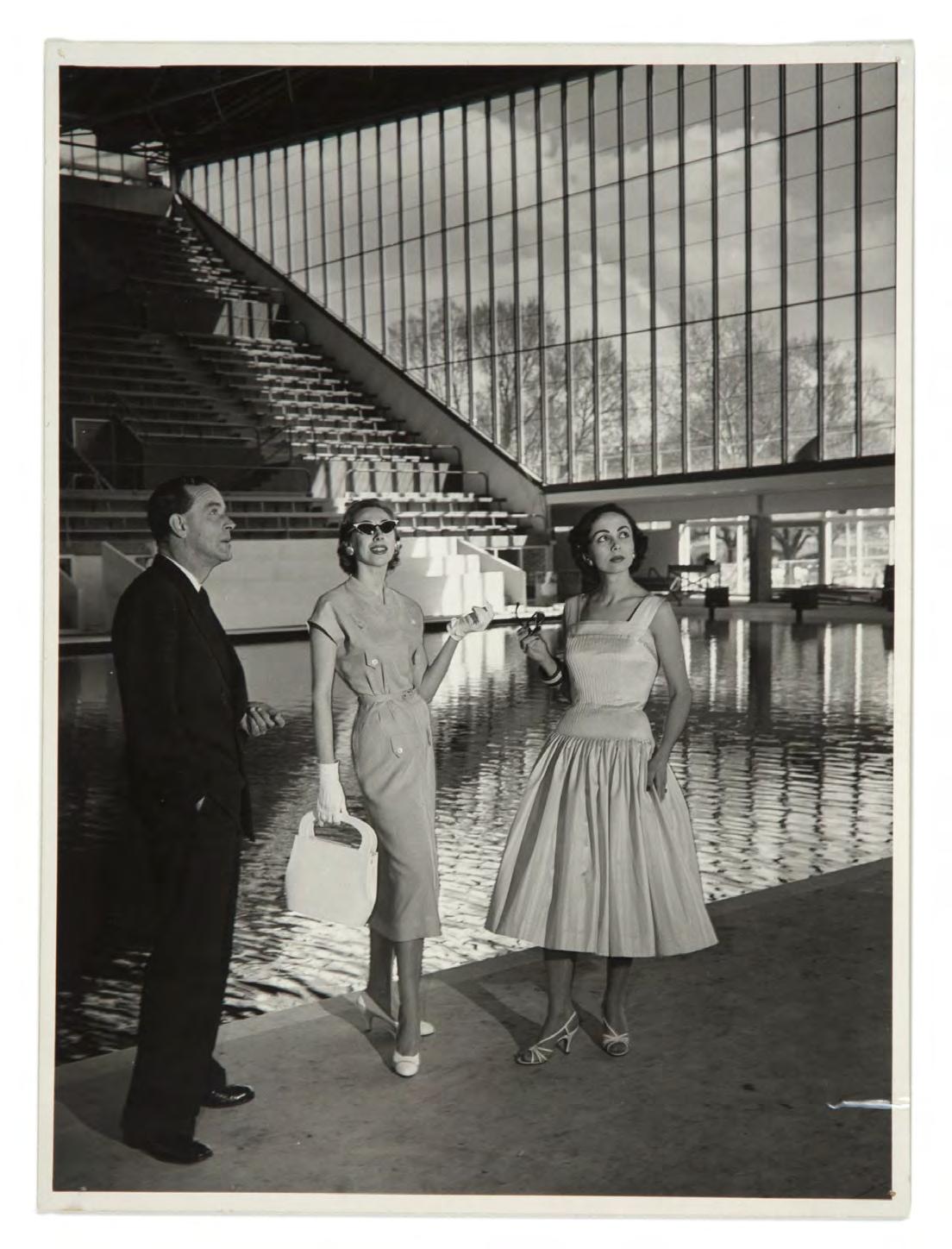 Opposite Diane Masters, Elly Lukas and a Georges Executive, Olympic Pool, Melbourne, 1956, unknown photographer. Gift of Laurie Carew 2008.